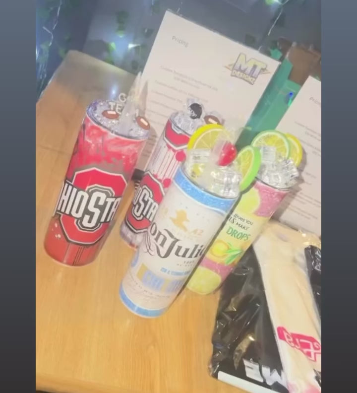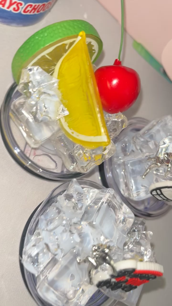 To add Custom Ice Fruit/Charm Lids please select the customization option it’s an additional $10 Charms and Fruit may vary from photos- if you want specific fruit or charms please request in your customization email prior to your proof