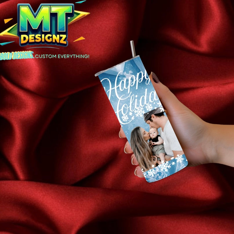 20 OZ Skinny Tumbler Holiday Snowflake Design Hot and Cold Custom Design To add ice and fruit/charm lids Make Sure to select this option prior to checking out